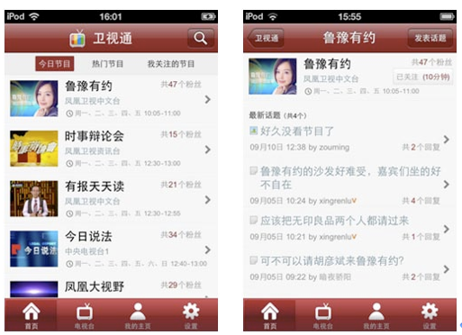假設看電視的時間越來越少,人們更希望得知哪些是最受歡迎的節目(相同社群),尤其是正在播出的內容… 而對節目內容業者,有了社群的分享力量,節目的收視很容易變成兩極化(收視好的節目因分享而更受歡迎),這些都是我們對 Social TV 的初步理解。 兩個星期前,鳳凰衛視的鳳凰網推出了 Social TV — ”衛視通”,藉由 iPhone 跟電視互動交流與好友、觀眾、主持人分享看電視的樂趣!
